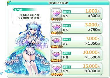 ★ 預先註冊超過3,000人:贈送鑽石750個