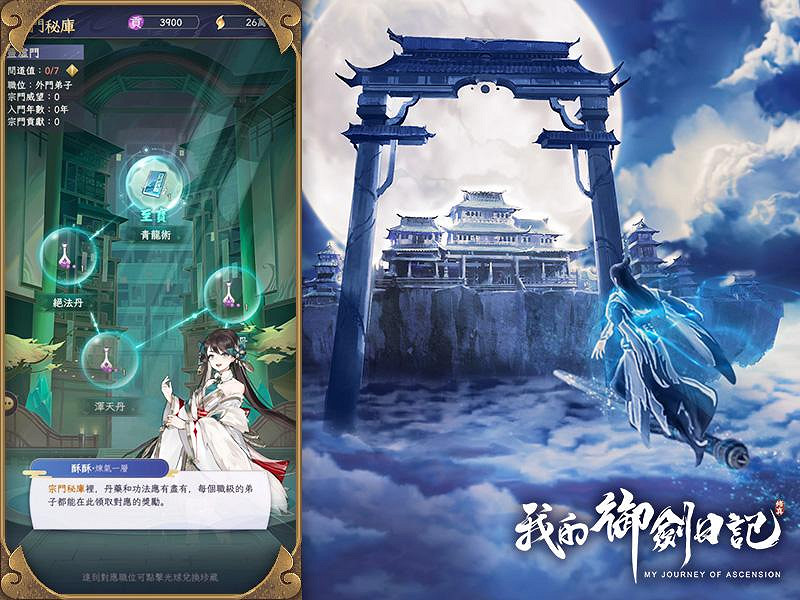 <宗門>系統在《我的御劍日記》裡,將人類、妖靈累積千百年的修道智慧,在玩家面前攤開,各種奧秘一覽無遺,讓有志之士蒐羅、修練甚至自創法術。只要玩家有心,沒有進不去的宗門,也沒有練不成的神功或丹器,基本上沒有太多限制,端看玩家想怎麼玩、怎麼搭配,因此,走出自己的獨特之路是絕對可能的。