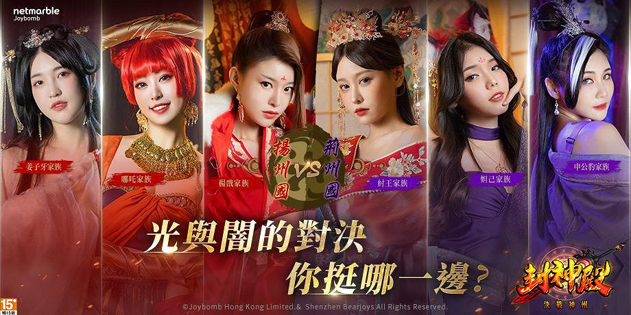 為了慶祝事前預約開啟,即日起至11月20日,《封神殿:決戰神州》舉辦「封神爭霸戰」,邀請6位知名遊戲直播主「樂樂(姜子牙)」、「妲妲(哪吒)」、「VIVI(楊戩)」、「張小筑(申公豹)」、「Zoe(妲己)」與「依渟(紂王)」化身6大家族封神女將,各自為光明派「揚州國」及闇黑派「荊州國」招兵買馬,搶占神州。