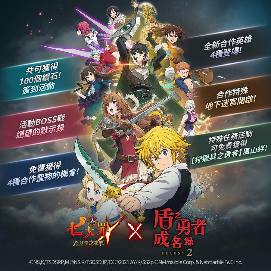 身為全球領先、高品質手機遊戲開發與發行公司的網石集團(Netmarble Corporation)宣布,如電影般的冒險RPG手遊七大罪:光與暗之交戰,攜手流行動畫系列《盾之勇者成名錄》推出全新遊戲更新。玩家在本次合作更新中將可享受4名全新英雄、特別活動與獎勵等豐富內容。
