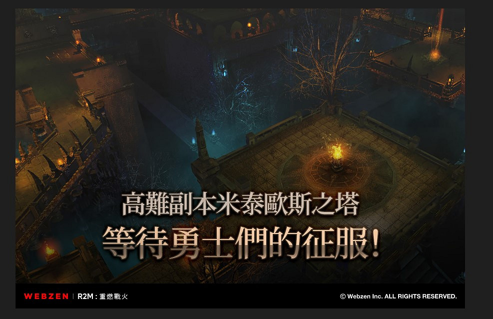 2022年 11月 8日,WEBZEN(CEO 金泰英,https://company.webzen.com)原廠直營的 MMORPG 手遊《R2M:重燃戰火》透過本次更新,新增了高等級副本「米泰歐斯之塔」。