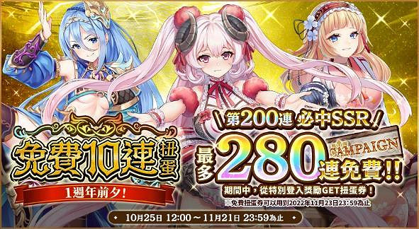 ◎ 1週年前夕!免費10連扭蛋券大放送