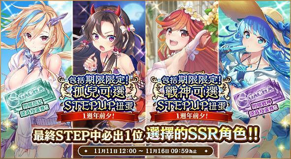 █ 活動內容:4種扭蛋將於限定期間內登場——孤兒精選STEPUP扭蛋、戰神精選STEPUP扭蛋、孤兒道具券扭蛋、戰神道具券扭蛋!道具券扭蛋是在商店購買禮包時附帶的贈品。
