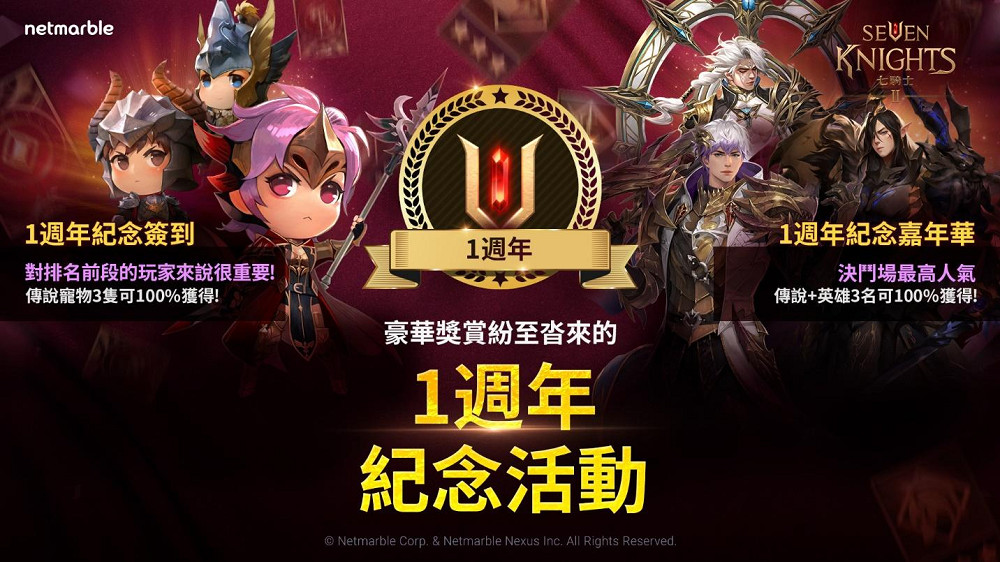 玩家可透過眾多遊戲內活動慶祝《七騎士2》上市一週年,同時獲取豐厚獎勵(自遊戲推出以來最多),多項活動包含: