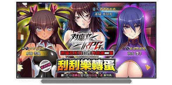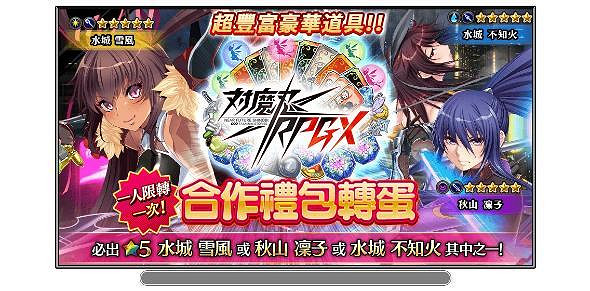 █ 活動內容:可以抽取《對魔忍RPG》人氣角色「★5水城 雪風」「★5水城 不知火」「★5秋山 凜子」的轉蛋。