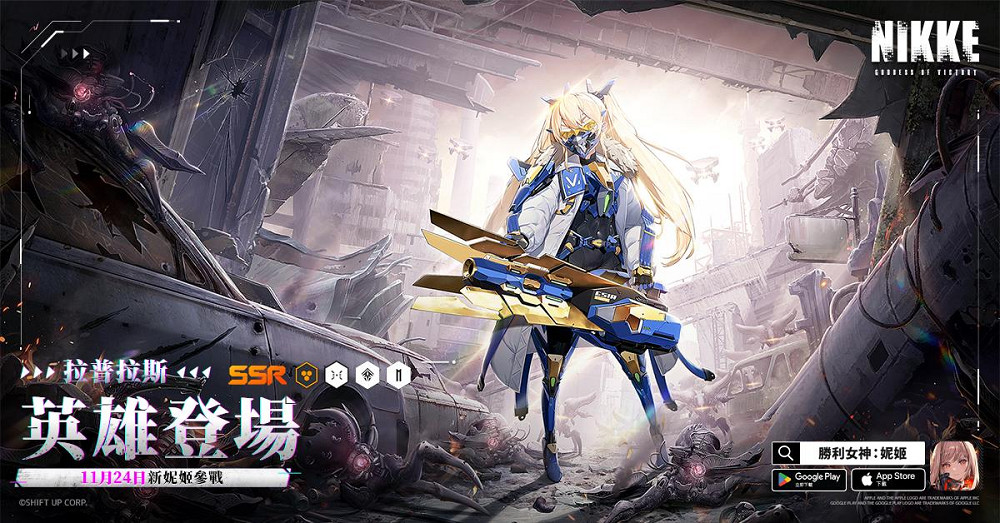 《勝利女神:妮姬》於本次更新後,加入全新SSR妮姬「拉普拉斯」,並同時曝光角色PV,「拉普拉斯」生產公司為米西利斯,隸屬墨提斯部隊,元素是鐵甲,武器為發射器,是火力型角色;指揮官於活動期間可使用珠寶及高級抽卡券進行特殊招募,將有2%機率可獲得該角色。