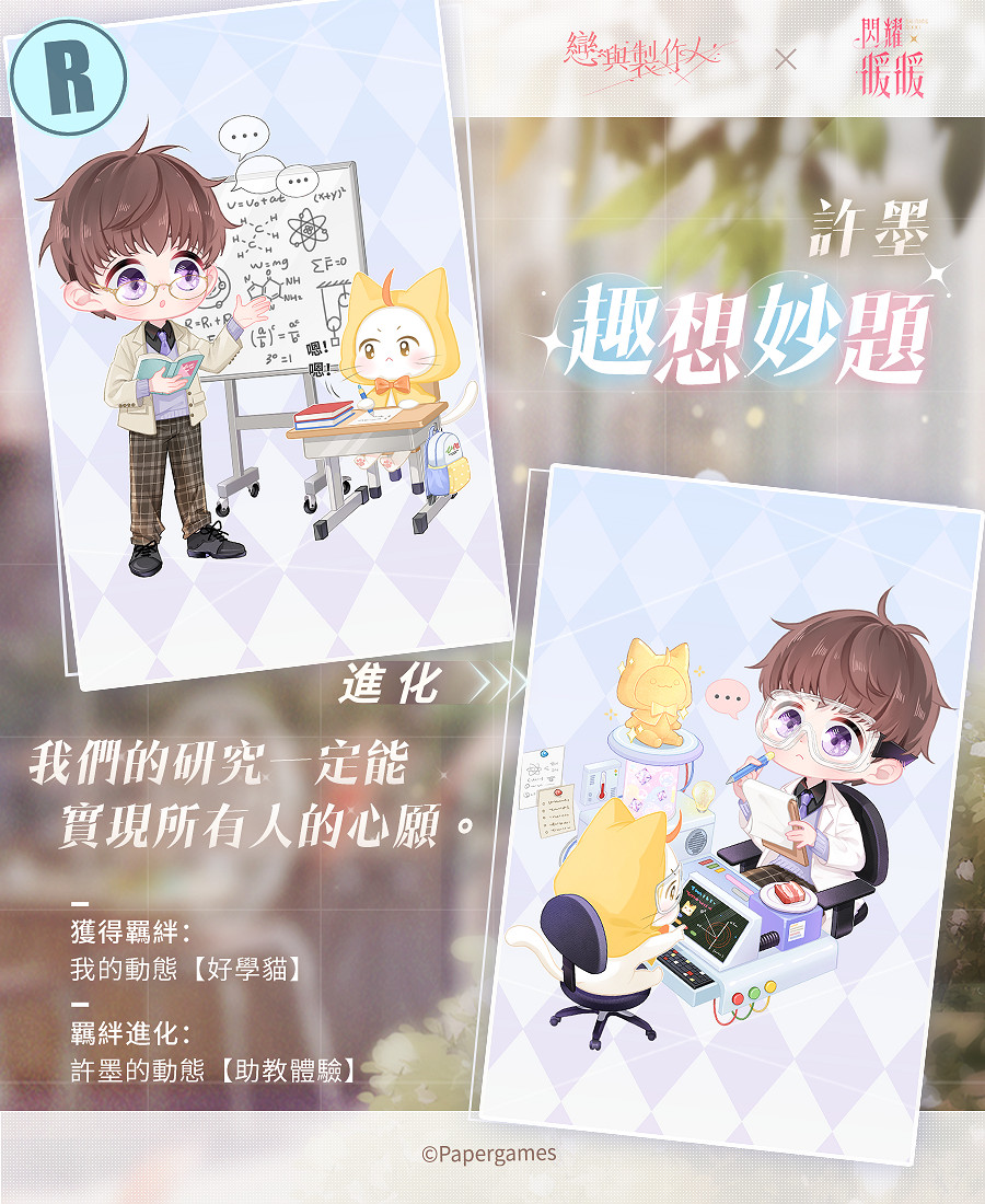 《閃耀暖暖》聯動主題R羈絆「許墨.趣想妙題」。