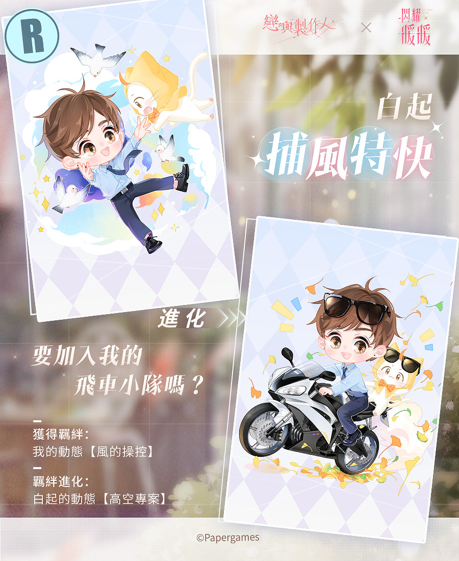 《閃耀暖暖》聯動主題R羈絆「白起.捕風特快」。