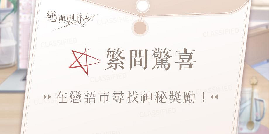 自11月23日起至12月18日止,《戀與製作人》開啟「繁間驚喜」限時活動。活動期間內,共有7位NPC會和玩家分享驚喜,每日可解鎖1位。根據NPC的提示,玩家前往各系統和地圖中搜索,找到對應的驚喜獎勵,若遲遲找不到線索,也可對NPC進行追問獲得具體位置的資訊。