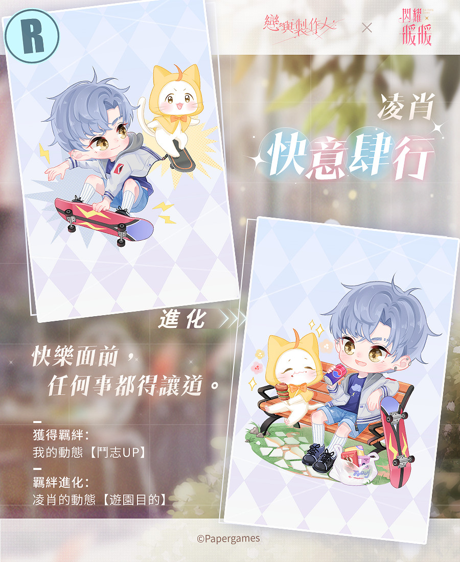 《戀與製作人》攜手《閃耀暖暖》打造疊樂園,邀請玩家展開一場「奇遇之旅」。即日起至12月4日止,玩家將有機會獲得《閃耀暖暖》聯動主題R羈絆「周棋洛.星晴樂章」、「李澤言.精心萌作」、「白起.捕風特快」、「許墨.趣想妙題」與「凌肖.快意肆行」,以及頭像框與專屬紀念貼紙等紀念獎勵。