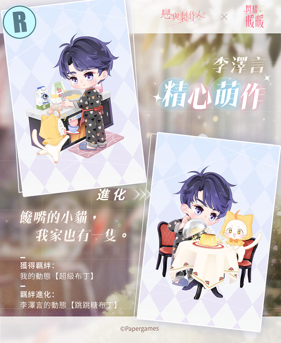 《閃耀暖暖》聯動主題R羈絆「李澤言.精心萌作」。