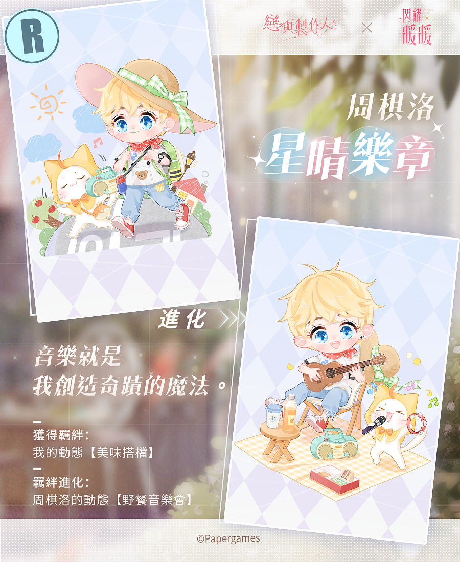 《閃耀暖暖》聯動主題R羈絆「周棋洛.星晴樂章」。