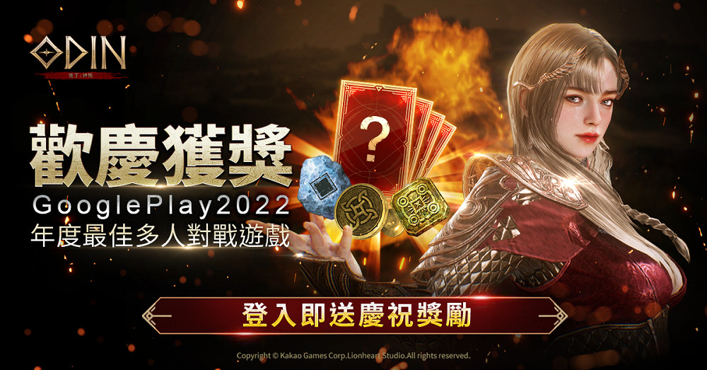 由韓國遊戲公司Kakao Games(CEO Cho Kye-hyun) 發行及其營運合作夥伴 Glohow在台營運、LionHeart Studio研發團隊打造的跨平台MMORPG遊戲大作 《奧丁:神叛》於今12月1日(四)宣布在台灣和香港的 Google Play 跨平台遊戲類別中,個別獲選 「2022 年度最佳多人對戰遊戲」第一(香港)及榮譽入圍獎(台灣)的殊榮!代表玩家肯定《奧丁:神叛》其豐富的遊戲性與高競爭力。