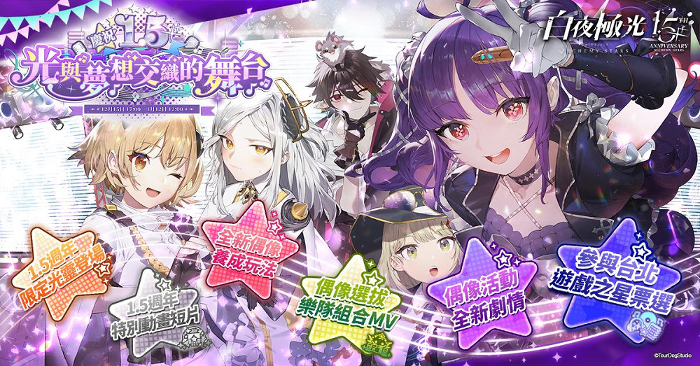 由 TourDogStudio 研發,Gamamobi 遊戲平台代理的超美學連線戰略RPG手遊《白夜極光》,在大家的支持下即將迎來1.5周年,今(12/1)搶先釋出即將開啟全新玩法、1.5週年慶祝紀念活動及偶像舞台票選活動揭曉預告,並精心準備了滿滿的福利要獻給導航員!