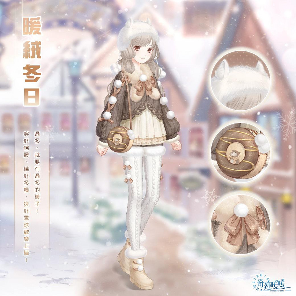 白色是冬天的底色,平時看慣了的風景,多了幾許異於常日的風情,為人們帶來特別的驚喜。12月10日起至12月15日止,《奇迹暖暖》推出限時登入送活動,搭配師登入遊戲即可透過信箱信件領取「暖絨冬日」套裝部件。
