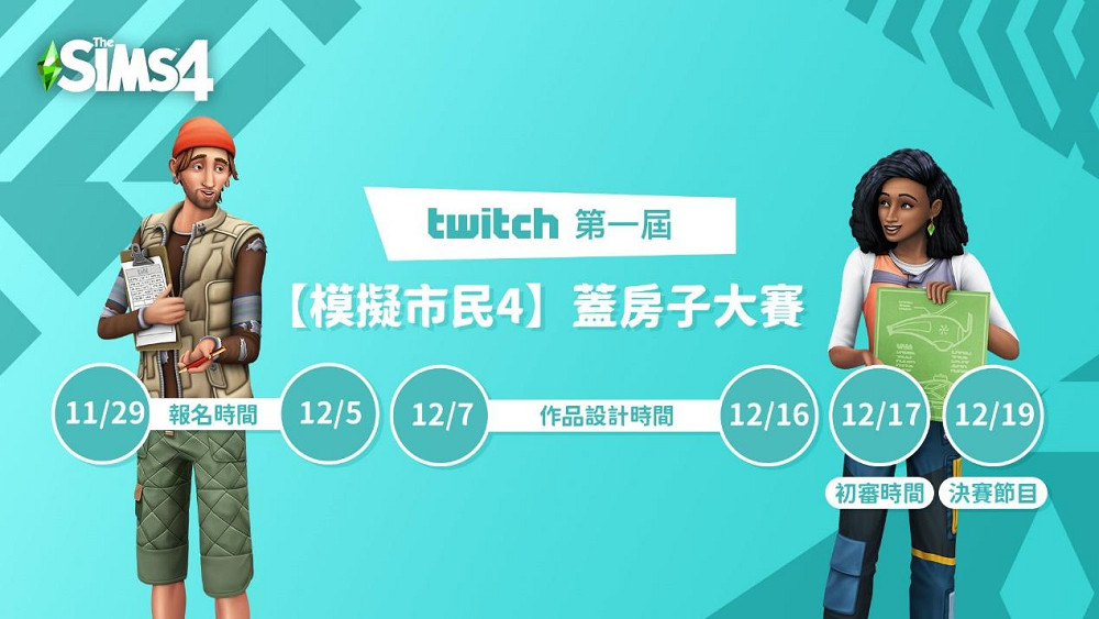 【新聞稿】世界知名的實況服務平台 Twitch 將舉辦「第一屆《模擬市民4 The Sim4》蓋房子大賽」,號召所有玩家與實況者們一起激盪創意建築魂!在 12/7 至 12/16 期間,實況夥伴或一般玩家皆可報名參賽,透過實況直播紀錄自己設計出兩棟建築的全過程,就有機會競搶高名次,獎金池更高達 10 萬元新台幣!