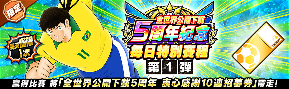 「全世界公開下載5週年紀念 每日特別賽程 第1彈」