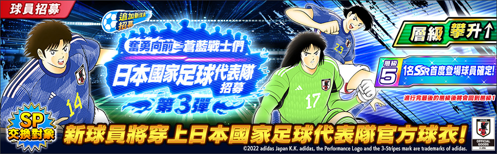 在層級招募中,在第3層級將確定可獲得一名 SSR 球員,第5層級則將確定獲得一名 SSR 新球員!