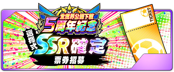 「全世界公開下載5週年紀念 選擇式 SSR 確定票券」招募活動