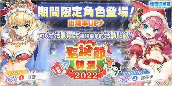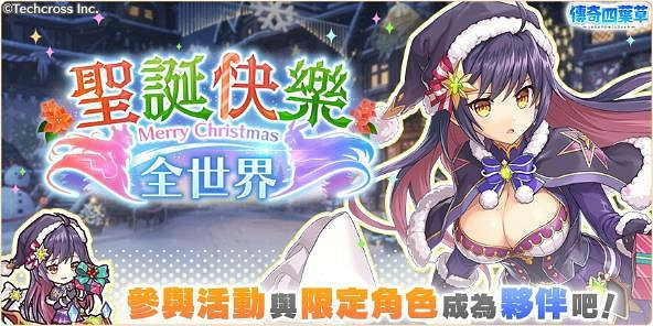 日系遊戲平台「Johren(驕倫)」運營中的戰棋式策略戰鬥RPG《傳奇四葉草 ~Legend Clover~》即日起起舉辦聖誕節特別活動!藉此機會把充滿節慶氣息的聖誕特別版「亞瑟」、「露莎卡」和「吉爾・德・雷」變成夥伴吧~!對了,12月25日聖誕節當天登入遊戲還有神秘禮物可以領❤ 別忘記囉!