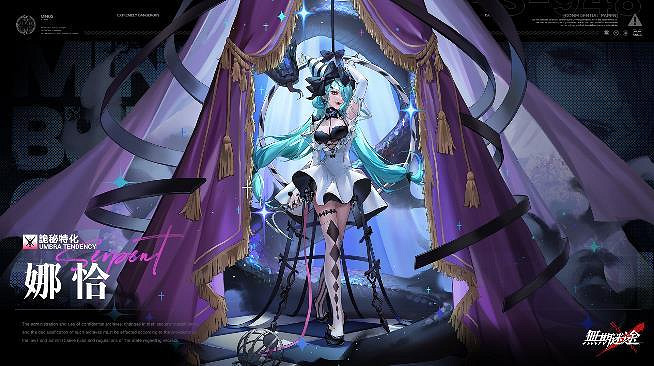 全新大型版本「妙夢泡影」,將於即日起更新維護後至1月3日展開限時活動,活動期間內推出限時卡池「忘憂樂土」,本次卡池將新增「娜恰」以及「莓絲」兩名禁閉者。S級禁閉者——娜恰是幻影娛樂的當紅藝人,非常擅長於舞台表演,據傳表演僅是她的偽裝,背地裡似乎正做著一些不法勾當。娜恰屬於詭秘特化類型的禁閉者,擅長法術輸出,大招【蛇影纏縛】可對自身九宮格內所有敵人,創造600%以上的法術傷害,並創造1點的核心傷害。是目前一線級別的強力近戰型法傷輸出角色,並且擁有良好的被動技能,可為造成傷害取得更高的加成。
