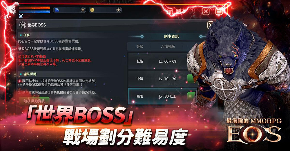 圖3:《靈境殺戮》「世界BOSS」副本劃分難易度,戰場分為三個階級