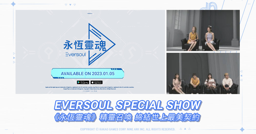 由韓國遊戲公司Kakao Games發行及其營運合作夥伴 Glohow在台營運、Nine Ark Inc.研發團隊打造的全新收集型RPG手遊作品 《永恆靈魂》 於昨日12月22日(四)圓滿結束首場線上直播特別節目 《Eversoul Special Show》!