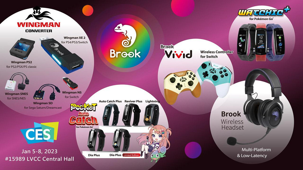 Brook品牌底下共有三大產品線,格鬥板、跨平台手把轉接器、與對應寶可夢的自動抓寶手環,在此次CES中都會一併展出。Brook格鬥板以跨平台與超低延遲聞名,是多位電競選手的愛用品牌。跨平台手把轉接器可讓玩家們能不受遊戲主機平台的限制,自由地選擇喜好的遊戲手把,在最熟悉的操控下進行遊戲。自動抓寶手環操作簡單,能自動捕捉寶可夢與自動補給道具,廣受寶可夢玩家歡迎。