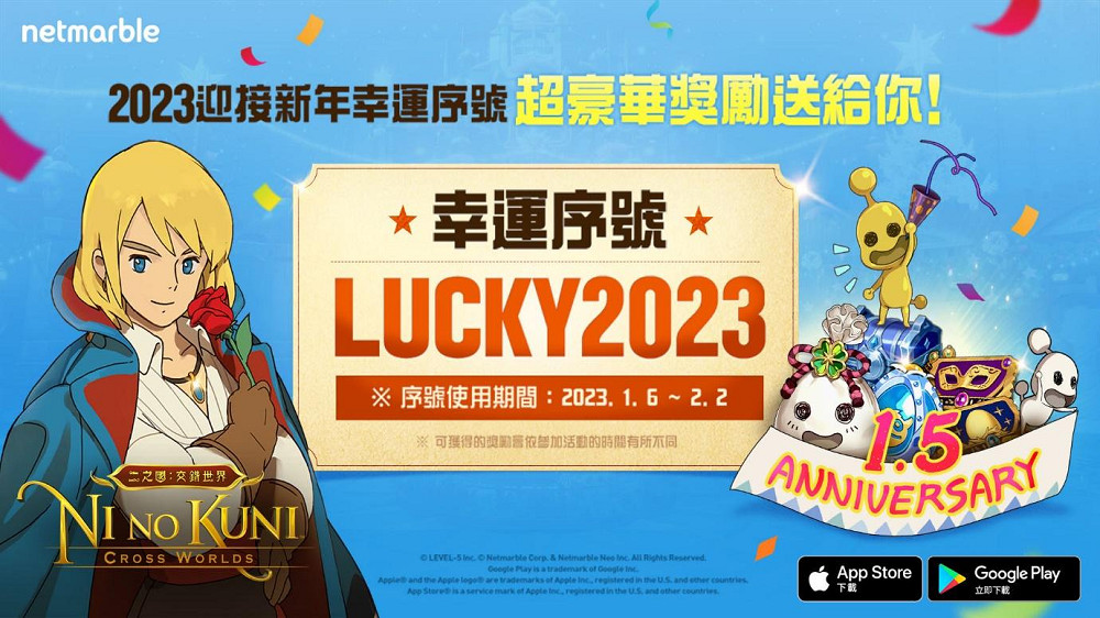 身為全球領先、高品質手機遊戲開發與發行公司的網石集團(Netmarble Corporation)今(6日)宣布,旗下MMORPG《二之國:交錯世界》為迎接新年假期,推出「呼喵幸運祭」活動。玩家只需輸入幸運序號並完成遊戲內任務,最多可獲得總計2023個「呼喵的幸運福袋」,內含豐富活動獎勵。