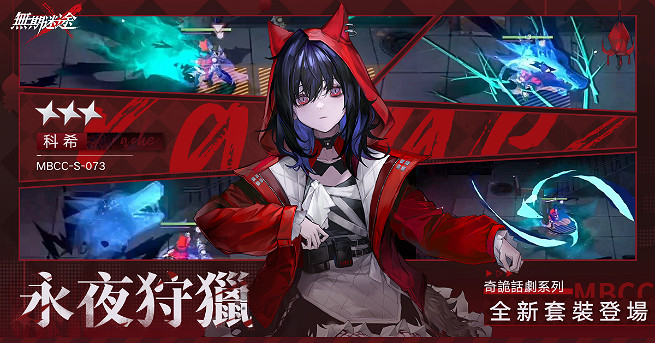 本次改版活動期間,孩子王——科希也將穿上三星套裝「永夜狩獵」參與到本次活動劇情中。童話風格的套裝不只可愛更恐怖,除了有專屬的動畫特效外,在戰鬥中更能呈現超華麗的戰鬥場面。請喜歡科希的局長們不要錯過本次機會,取得專屬科希的三星套裝!