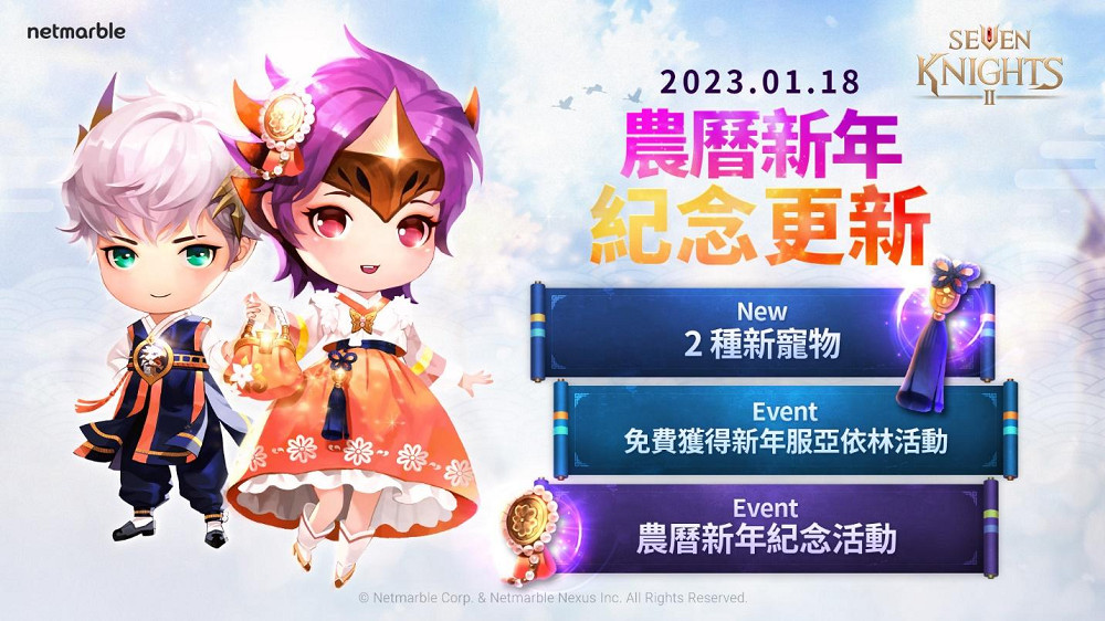 身為全球領先、高品質手機遊戲開發與發行公司的網石集團(Netmarble Corporation)宣布,旗下RPG手遊《七騎士2》迎來最新全球更新以慶祝農曆新年到來。應景的農曆新年更新將從1月18日起持續至2月1日,為玩家提供眾多特別活動與限時獎勵!