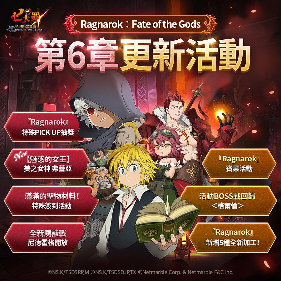 身為全球領先、高品質手機遊戲開發與發行公司的網石集團(Netmarble Corporation)宣布,如電影般的冒險RPG手遊七大罪:光與暗之交戰推出全新遊戲更新,包含專屬原創劇情「Ragnarok」第 6 章。即日起,玩家可體驗原創故事、全新加入的英雄、魔獸戰與特別活動等。