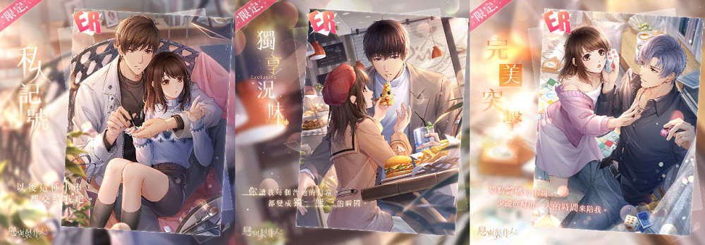 ER羈絆「白起.私人記號」(左)、「許墨.獨享況味」(中)及「凌肖.完美突擊」(右)。