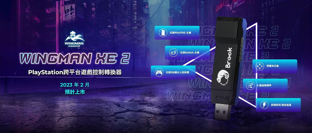 台灣遊戲周邊品牌Brook將推出全新改版的 [Wingman XE 2轉接器],繼承前代產品 [Wingman XE轉接器] 廣受玩家好評的眾多特色,讓您將現代遊戲手把連接到舊世代的遊戲主機(PS4及PS3),從而提升遊戲體驗和控制器選擇。例如,您可以使用PS5 Dual Sense手把在PS3上遊玩復古遊戲,或將Xbox One手把用於PS3和PS4上;支援6軸體感控制、振動功能及無線使用,讓玩家不再需要購買廉價的第三方控制器,就能更加舒適地遊玩遊戲;新版本更加入任天堂Switch平台的支援,讓玩家自由選擇喜愛的手把,飄移、手感不佳等狀況不復存在。Wingman XE 2轉接器售價 $ 1,390元現正販售中。