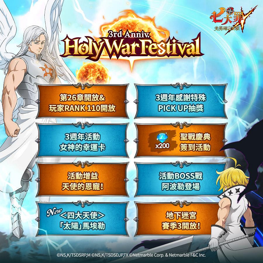 「聖戰慶典」3週年慶祝活動為所有玩家帶來眾多遊戲內特別活動,包含: