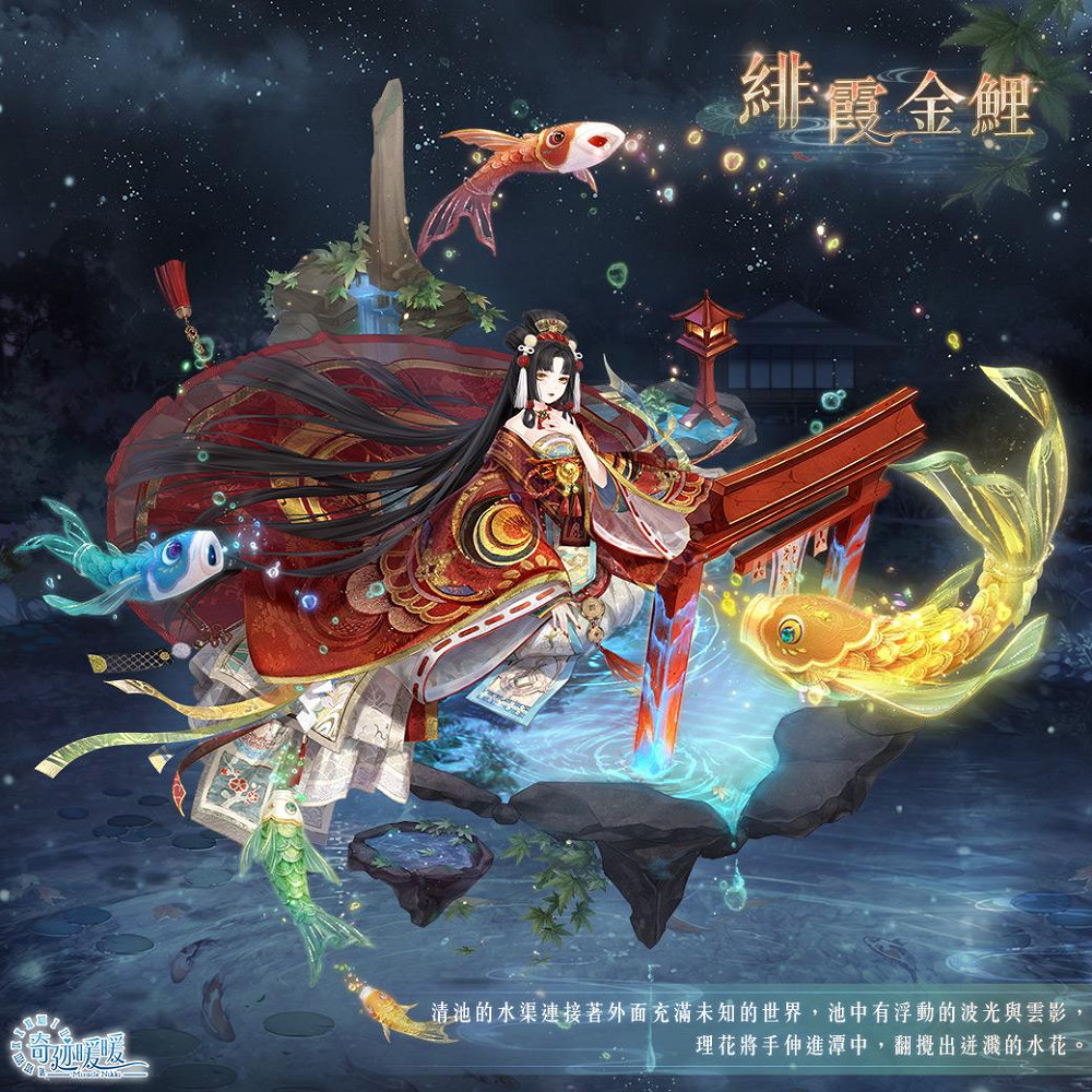 清池的水渠連接著充滿未知的世界。每每輕搖串鈴,池中便會泛起波光,一條通身純金的鯉魚躍然水上。全新活動「衿袖池鱗」將從19日上午5點至25日止限時推出。活動期間內,搭配師購買「遇鯉心箋」,可抽取精緻雲端套裝「緋霞金鯉」部件,購買首張「遇鯉心箋」還可享半價優惠。