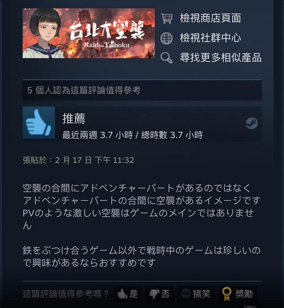 《台北大空襲 Raid on Taihoku》Steam商店頁:https://bit.ly/3Wxkjpw