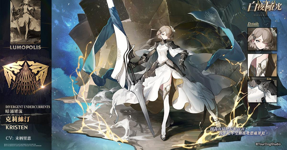 5星,屬性水,稱號暗湧逆流,克莉絲汀是位出生在優渥環境的貴族少女,但卻不願循規蹈矩地過上父母安排的生活,最終按照自己的心願,選擇了成為白夜城審判庭的一名見習審判官。