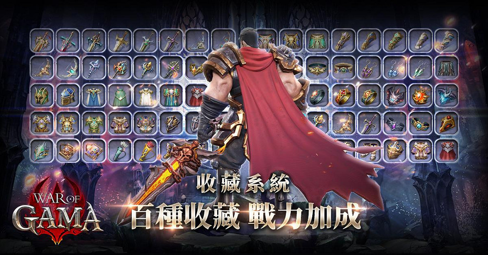 《War of GAMA》裡有強大的圖鑑及收藏系統,玩家第一次獲得的變身卡及召喚靈將可用於啟動圖鑑,啟動特定組合圖鑑可獲得不同的永久屬性加成,而重複的裝備道具則是可登錄至收藏系統,蒐集完指定類型和強化等級的裝備和道具組合,也可獲得永久的屬性加成;這兩個系統皆包含百種以上組合,完全不用擔心拿到重覆的道具裝備武器會被丟棄浪費,啟動或蒐集完成所獲得的屬性加成將是永久的,可大大加成戰力數值。