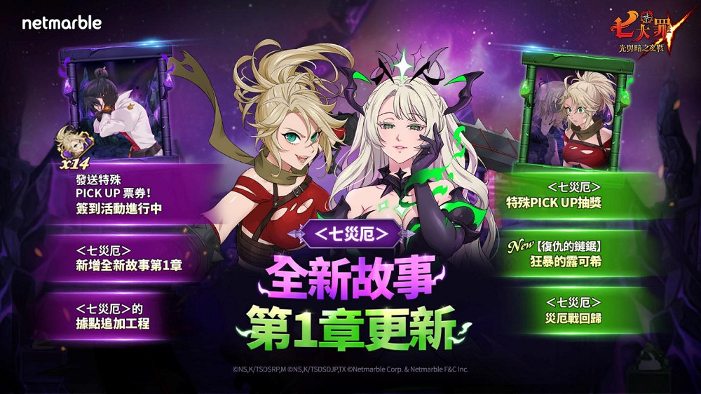 身為全球領先、高品質手機遊戲開發與發行公司的網石集團(Netmarble Corporation)宣布,如電影般的冒險RPG手遊七大罪:光與暗之交戰推出全新遊戲更新。玩家即日起可以體驗到更多的遊戲內容,包含全新故事、全新的角色、活動以及獎勵等。