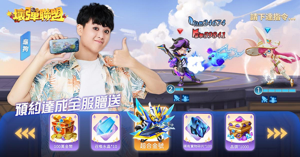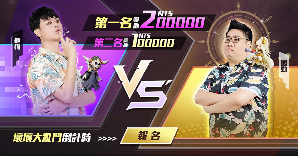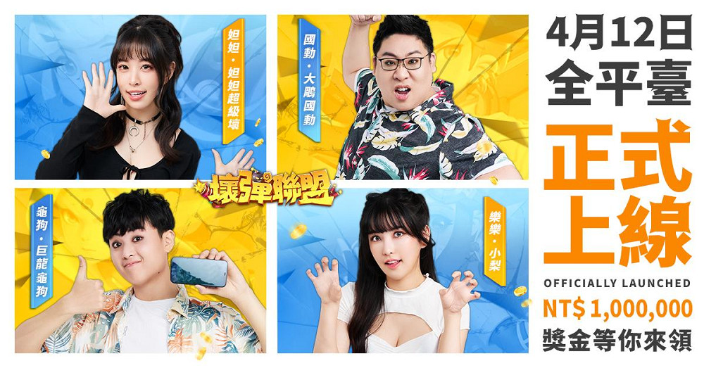 官方預告,多位知名實況主將在近期開啟《壞彈聯盟》實況,更有「國動」、「龜狗」、「樂樂」、「妲妲」四位人氣KOL帶隊爭奪「壞壞大亂鬥」NT$1000,000大獎!