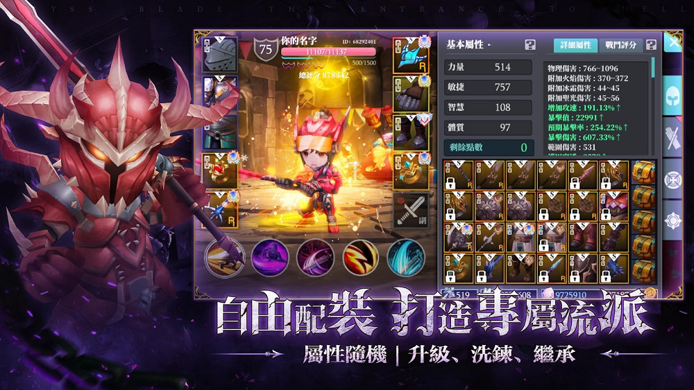 在深淵探險的旅途中擊倒魔物就有機會獲得海量裝備,超過300種以上的武器等你來解鎖。擊殺Boss必可獲得暗金、橙装、金装等級稀有裝備,還有更多豐富資源給你滿滿驚喜,絕不會讓你苦無神裝被虐。透過升級、洗鍊、繼承武器與裝備,自由配裝,隨心所欲的討伐魔物,打造自己的專屬流派。