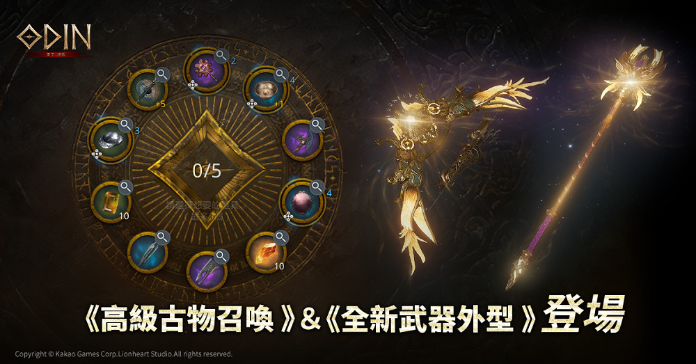 《奧丁:神叛》中,透過古物召喚系統來獲取並收集古物道具,是玩家能夠增強角色能力值的方式之一。而今定期維護過後,古物召喚系統也將進行全面的改版,不僅在使用的便利性上做了優化,並更新全新召喚介面與新增「高級古物召喚」的功能,藉此玩家便有機會透過召喚來獲取從高級~英雄階級的古物,以及高級~傳說階級的裝備道具喔!
