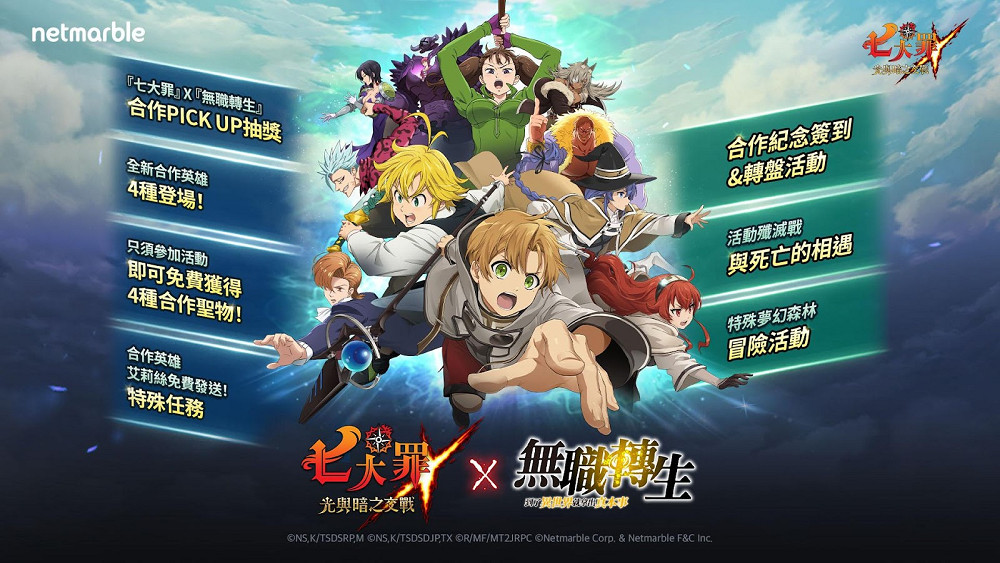 身為全球領先、高品質手機遊戲開發與發行公司的網石集團(Netmarble Corporation)宣布,如電影般的冒險RPG手遊七大罪:光與暗之交戰推出全新遊戲更新,與熱門動漫系列《無職轉生》展開合作。本次合作更新包含4名嶄新英雄、特別活動與獎勵等豐富內容。