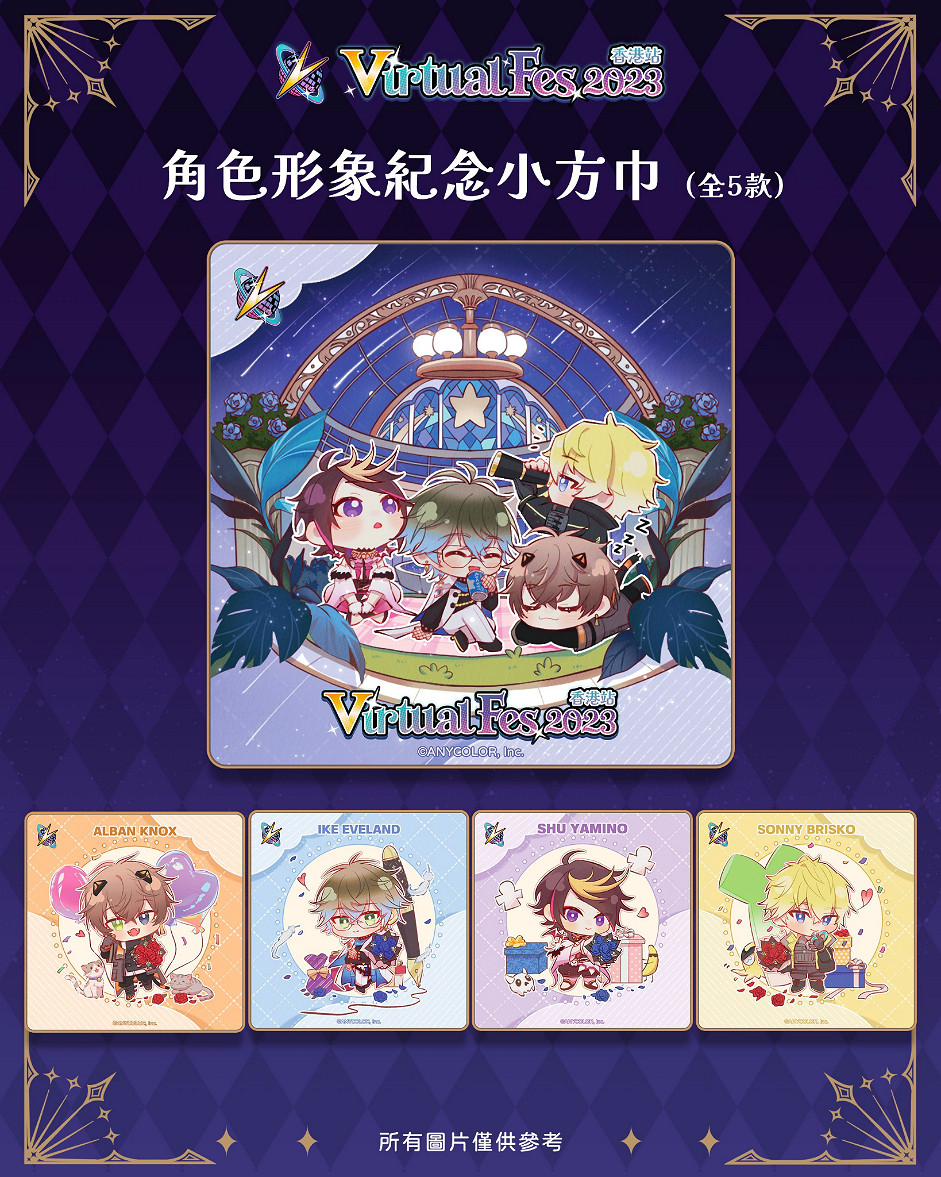 限定 T-shirt、特色LED應援熒光棒、活動紀念襟章、角色形象紀念毛巾以及小方巾,大大小小的周邊均可於活動網站平台上購入。除了早前已公開的新立繪外,另有四位角色的Q版造型,均是活動限定的形象。