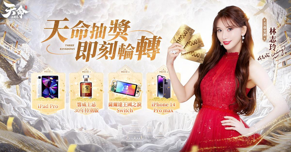 《天命三國志》事前登錄活動正式開跑,同步開啟百億代金券瓜分活動,全民瓜分10000000000代金券。玩家完成預約即可獲得10000代金券,參與天命輪轉等活動還能額外獲得90000代金券!提醒各位預約玩家每日登入參與活動,會有超高機率獲得勞力士綠水鬼手錶最新版、響威士忌30年花鳥風月特別版、薩爾達王國之淚Switch OLED特別版主機、iPhone 14 Pro max等眾多好禮喔!