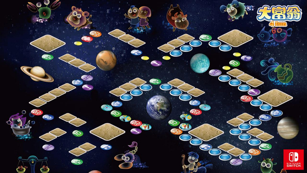 此外,令人回味無窮的台灣配音,為遊戲角色個性凸顯了風格與特色,堪稱經典中的經典!Switch版《大富翁 4 Fun》正式版將一次收錄13位經典角色,包含金貝貝、沙隆巴斯、錢夫人、阿土伯、糖糖等人。多樣化地圖中,除了囊括從亞洲到美、澳洲美麗風景地圖外,還另外以神秘的十二星座為藍圖設計了「星空之旅」、以知名景點巨石陣設計的遺世絕俗仙地「神秘島」,值得玩家一一品味、嘗鮮。