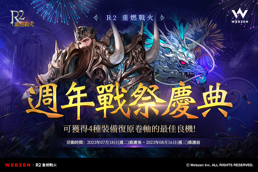 WEBZEN 為紀念《R2 重燃戰火》上線 1 週年,同步開啟各種豐富活動。