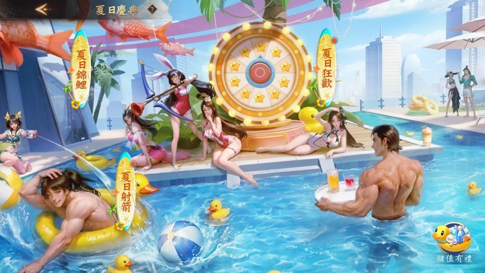 除了上述介紹的新武將及傳承館外,《風起三國之亂世逐鹿》也同步開啟了限定期間舉辦的夏日活動,要來幫大家消暑一下!夏日活動共有「夏日錦鯉」、「夏日射箭」以及「夏日狂歡」三個項目;在這裡,玩家可以玩到靶場射箭、幸運彩券跟貝殼輪盤,每個項目既新奇又有趣,要讓炎炎夏日的三國迷們補充精力,再戰沙場!