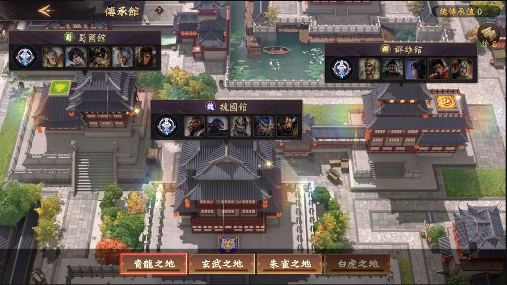 其中,總傳承值達到一定條件即可開啟新場館,隨著主公們等級的上升,新的頁簽也將逐漸解鎖。